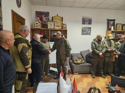 Далее делегация от КПРФ встретилась с бойцами интернационального батальона «Пятнашка».