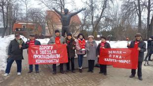 9 марта в честь 90-летия со дня рождения первого космонавта Земли Юрия Алексеевича Гагарина калужские коммунисты под лозунгами «Дорогу к звёздам прокладывали коммунисты», «Земля – Луна, Калуга – Марс!» провели возложение цветов к памятнику Ю.А.Гагарину.