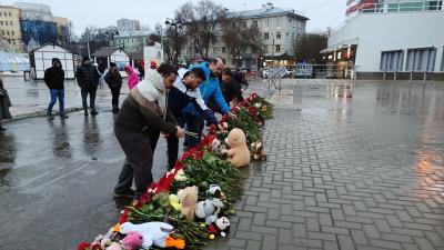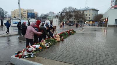 В течение всего дня рязанцы приносили живые цветы, свечи и игрушки к стихийному мемориалу у Муниципального культурного центра. Рязанские коммунисты и комсомольцы также возложили цветы и почтили память погибших.
