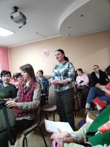 Вела встречу Председатель МГРО ВЖС «Надежда России» Юлия Михайлова. В своем докладе она подвела итоги работы отделения во время избирательной кампании по выборам Президента РФ и рассказала о проводимом конкурсе «Красное платье» и его участницах.
