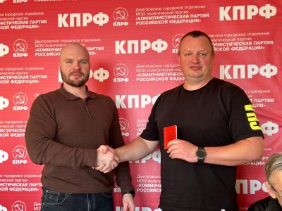 В завершении заседания, первый секретарь Дмитровского ГК КПРФ Александр Корнев вручил партийные и комсомольские билеты новым товарищам.