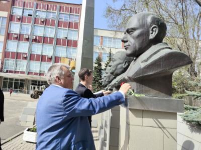 Гости возложили алые гвоздики к памятной стеле покорителям космоса и бюстам выдающихся деятелей советской космонавтики и ракетного двигателестроения – генерального конструктора Сергея Павловича Королева, главных конструкторов КБХА Семена Ариевича Косберга и Александра Дмитриевича Конопатова, первого космонавта Юрия Алексеевича Гагарина. Также цветы были возложены к памятнику В.И. Ленину, бережно сохранянемому заводчанами.