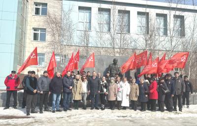 22 апреля с.г. коммунисты, комсомольцы, дети войны, члены Якутского республиканского отделения общероссийского общественного женского движения «Надежда России в Нюрбе (первый секретарь райкома Татьяна Кардашевская), Алдане (Ольга Банецкая), Олекминске (Юрий Тимофеев), Вилюйске (Василий Филиппов), Мирном (Андрей Кузнецов), Борогонцах (Геннадий Оллонов), Верхневилюйске (Георгий Степанов), Ленске (второй секретарь Ленского райкома КПРФ Алексей Никонов) и других провели митинги, торжественные собрания и возложили живые цветы к памятникам В.И. Ленина.