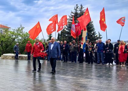Перед собравшимися выступил Первый секретарь Севастопольского ГК КПРФ, заместитель Председателя Законодательного Собрания г. Севастополя В. М. Пархоменко: