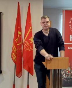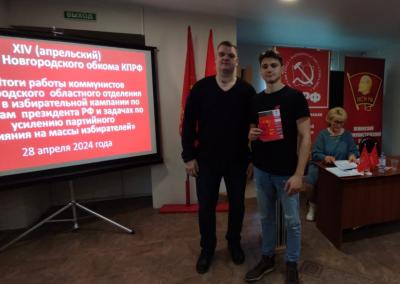 Перед началом работы Пленума второй секретарь Новгородского обкома КПРФ Макаревич Н.А. вручил комсомольский билет новому члену ЛКСМ РФ.
