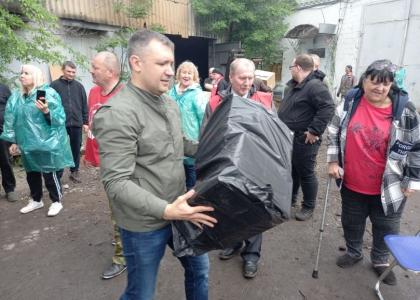 А движение гуманитарных грузов с машины на машину, с машины на склад продолжается. Опытные рабочие предприятия ГУП «Донецккокс» Михаил Владимирович и Марс Рафаилович, совместно с бывшей заведующей отдела кадров предприятия, а сегодня заведующей орготделом рескома КПРФ Сабиной Животовской, организовали доставку погрузчика и других механизмов. На складе нет техники, а на каждой разгрузке, без техники приходится очень туго. Вот и проявляют находчивость и смекалку рабочие и сотрудники, некогда работающие вместе. В разгружаемой машине лихо управляются со старенькой роклой секретарь партийной организации Киевского района Артем Сальник и лидер коммунистов Куйбышевского района, отец погибшего воина – Игорь Калмыков. Им помогают коммунисты многострадальной Петровки во главе с Нэлли Тарабан. (Петровского района) Первый секретарь рескома Борис Литвинов тоже на машине. Ему сверху лучше руководить процессом разгрузки. Видно движение людей и грузов. С машины то и дело звучат названия партийных организаций, имена тех, кто собирал и направлял грузы на Донбасс. «Петровка, Нелли Тарабан. Опять Петровка, и опять…»… Вот уже более 5 лет коммунисты Тверской области и Петровчане Донецка поддерживают прямые связи. Абсолютно в каждой машине, отправляемой с гумгрузом КПРФ из Подмосковья, содержится груз для Петровки и Нелли Тарабан. Ведь Петровка с её без малого сто тысячным населением и есть передовая линия войны.