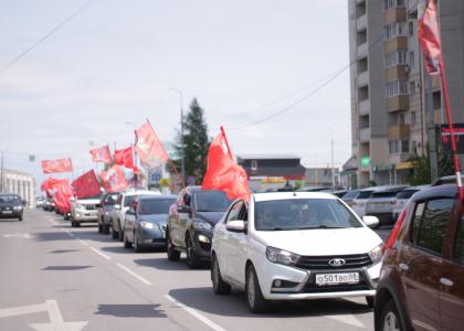 В Тамбове автоколонна под красными стягами выдвинулась от бюста И.В. Сталина по центральным улицам к главной площади областного центра, носящей имя В.И. Ленина.