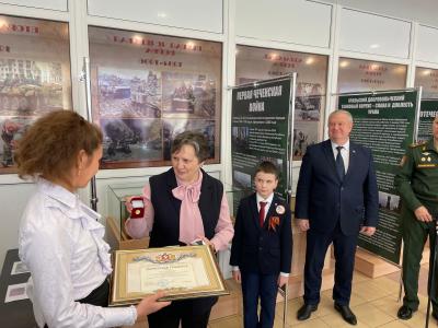 В завершение церемонии Р. Скоморохова вручила заместителю директора школы Ирине Чирковой Почётную грамоту регионального Законодательного Собрания за многолетнюю плодотворную педагогическую деятельность. В открытии музея также приняли участие ветераны военной службы, представители администрации Чкаловского района, педагоги.