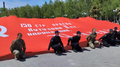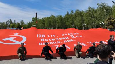 Также в ходе Автомобильной вахты памяти по маршруту следования участники патриотической вахты торжественно разворачивали масштабную копию Знамени Победы у мемориалов советским воинам-освободителям.