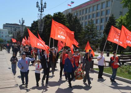 Сегодня Дагестанское республиканское отделение КПРФ вместе с коммунистами города Махачкалы, комсомольцами и сторонниками партии провели торжественное шествие, посвящённое Великой Победе.