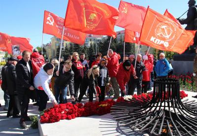 Когда все официальные торжества на площади завершились, стало возможно и остальным возложить цветы к Вечному огню. Отправились туда и коммунисты. К собравшимся обратился первый секретарь Брянского обкома КПРФ А.Г. Архицкий. Поздравив всех с праздником, он напомнил, что не стоит забывать за что и против чего сражались в Великой Отечественной войне советские люди, а также какая цена была ими заплачена. Сейчас непростые времена, но сегодняшние испытания блекнут в сравнении с теми, которые выпали нашим предкам в сороковые годы ХХ века. И нам, их потомкам, нужно стараться быть достойными их памяти.
