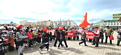 Будущие пионеры с большим волнением готовились к этому замечательному празднику. Перед монументом воинам-якутянам под красными знаменами и флагами выстроились будущие юные ленинцы, а также пионеры, комсомольцы, ветераны партии, депутаты Государственного Собрания (Ил Тумэна) и Якутской гордумы от КПРФ.