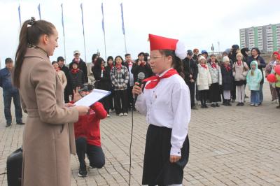 В честь 102-й годовщины Всесоюзной пионерской организации имени В.И. Ленина в Якутске на площади Победы 19 мая состоялся торжественный пионерский сбор. В этот солнечный день многим мальчишкам и девчонкам повязали красные галстуки.