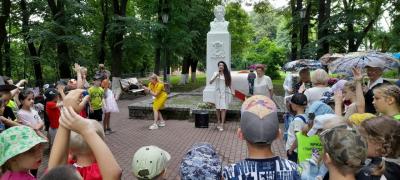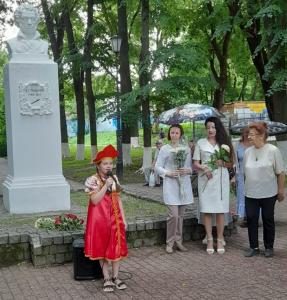 Праздник состоялся в центре города, несмотря на дождь, в сквере А.С.Пушкина у бюста поэта.