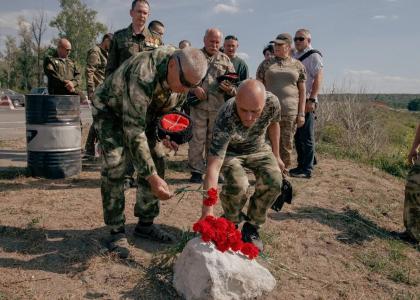 Отдать дань памяти и уважения защитникам Луганщины, к месту гибели товарищей пришли бывшие бойцы казачьего подразделения «Атаман», ветераны боевых действий. депутаты Народного Совета ЛНР от КПРФ, коммунисты: командир подразделения «Атаман» казачий генерал Виктор Щекатунов, войсковой старшина Игорь Рупин, депутат Луганского Городского Совета, секретарь Луганского Республиканского Комитета КПРФ, полковник МССО РФ Валентин Попов, начальник штаба КНГ ВВД Евгений Кузнецов, атаманы станиц А.Н. Гончаров, Ю.М. Синенко и Д.С. Бондарь, а также другие участники военных действий.