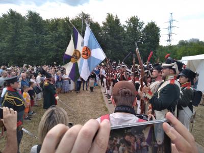 Стреляли артиллеристы из пушек, гарцевали гусары на лошадях, ходили в атаку пехотинцы. По соседству раскинулись два лагеря: русских и французов. Реконструкция проводилась в рамках развлекательно-просветительского проекта Правительства Москвы «Времена и эпохи».