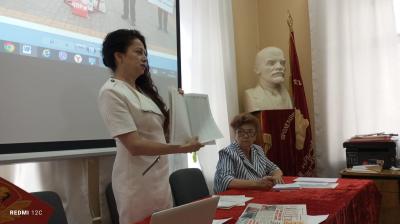 Людмила Михайловна Любшина, ответственная за сбор партийных взносов, в своём выступлении рассмотрела вопросы ведения партийных ведомостей, их оформление, даты контроля.