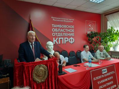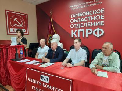 21 июня под председательством первого секретаря Тамбовского обкома КПРФ А.И. Жидкова состоялось заседание бюро обкома и был проведён XVII совместный Пленум Комитета и КРК Тамбовского областного отделения КПРФ.