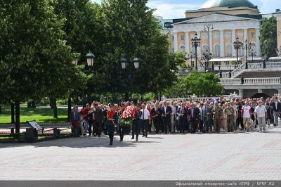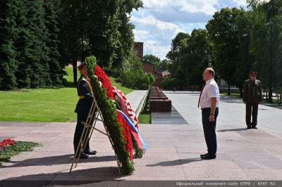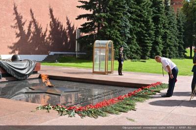 Затем состоялось возложение цветов к Могиле Неизвестного Солдата у Кремлевской стены и к памятнику Маршалу Советского Союза Г.К. Жукову.