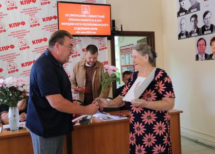 13 июля в Саранске состоялся ХII (июльский) совместный Пленум Комитета и Контрольно-ревизионной комиссии Мордовского республиканского отделения КПРФ, посвященный подведению итогов совместного IX (майского) Пленума ЦК и ЦКРК КПРФ, подготовке к дополнительным выборам и итогам отчётно-выборной кампании в первичных отделениях КПРФ.