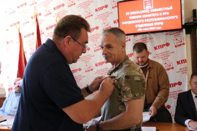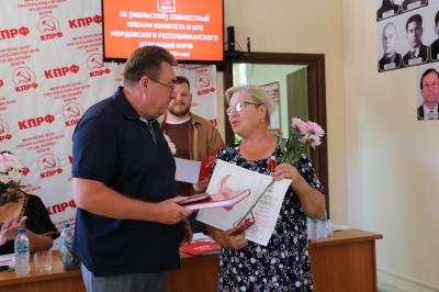 По традиции Пленум начался с вручения партийных билетов и наград. Высшего ордена ЦК КПРФ «Партийная доблесть» удостоена секретарь одного из первичных отделений Ромодановского районного отделения КПРФ Заречнева Ольга Александровна. Медалью «100 лет Красной Армии» награждён участник специальной военной операции, лейтенант Лисицын Валерий Геннадьевич. Ему были переданы денежные средства, собранные коммунистами Мордовии и жителями республики на приобретение дронов.