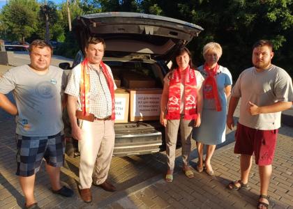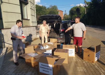 Рязанские коммунисты также приняли участие в сборе гуманитарного груза, который составили, главным образом, продукты и предметы первой необходимости. Наибольший вклад в это внесли коммунисты Скопинского городского отделения КПРФ, а также партийные отделения Октябрьского, Железнодорожного, Клепиковского, Рязанского, Захаровского и других районов. В сборе гуманитарного груза также активное участие приняли депутаты-коммунисты Д.С. Сидоров, Э.Н. Волкова, Л.М. Кривцова, в доставке к месту отправления колонны – комсомольцы Е.Н. Морозов и Ю.М. Балалин.