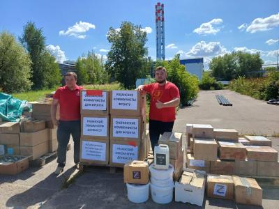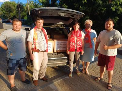 Рязанские коммунисты также приняли участие в сборе гуманитарного груза, который составили, главным образом, продукты и предметы первой необходимости. Наибольший вклад в это внесли коммунисты Скопинского городского отделения КПРФ, а также партийные отделения Октябрьского, Железнодорожного, Клепиковского, Рязанского, Захаровского и других районов. В сборе гуманитарного груза также активное участие приняли депутаты-коммунисты Д.С. Сидоров, Э.Н. Волкова, Л.М. Кривцова, в доставке к месту отправления колонны – комсомольцы Е.Н. Морозов и Ю.М. Балалин.