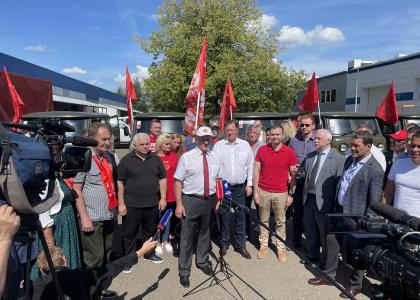 Руководство Центрального Комитета КПРФ во главе с Председателем Геннадием Андреевичем Зюгановым, первым заместителем Председателя Юрием Вячеславовичем Афониным и заместителем Председателя Владимиром Ивановичем Кашиным прибыло на место отправки груза в Совхоз имени Ленина.