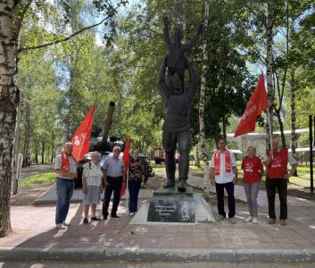 На въезде в Переславль-Залесский коммунисты сделали остановку у постамента – легендарного танка Т-34, созданного прославленным конструктором Михаилом Кошкиным. Именно эта военная техника, по мнению многих историков, смогла переломить ход Великой Отечественной войны. Активисты почтили память героев-танкистов, которые внесли большой вклад в общую Победу над врагом в годы Второй Мировой. В самом Переславле активисты возложили цветы к мемориалу Памяти и Славы, расположенному у самого крупного районного предприятия советского времени «Славич».