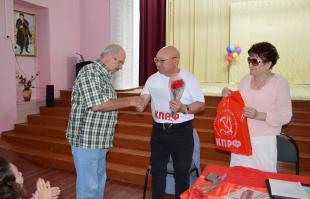 В Городовиковске встреча проходила в концертном зале городской Детской школы искусств. Перед ее началом глава коммунистов Калмыкии исполнил почетную миссию: в торжественной обстановке вручил партийный билет Наталье Гаряевой; юбиляру Виктору Зубцову – Почетную грамоту ЦК КПРФ; сыну участника Сталинградской битвы Юрию Хаджинову – памятную медаль ЦК КПРФ, выпущенную к 80-летию Сталинградского сражения; поздравил ветерана партии и труда Михаила Веселкина с присвоением высокого звания Почетный гражданин Республики Калмыкия.