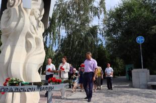 После участники памятного мероприятия совершили шествие к скульптуре «Детям Сталинграда», где тоже возложили цветы и почтили минутой молчания память всех погибших детей.