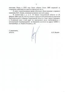 Данное обращение нигде не публиковалось, поэтому я направил депутатский запрос, в котором прошу предоставить копию этого обращения и обосновать решение о переносе монумента Владимиру Ильичу Ленину.