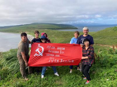 По поручению секретаря МК КПРФ, руководителя фракции КПРФ в Мособлдуме Александра Наумова, руководитель аппарата фракции КПРФ регионального парламента Константин Елисеев, совместно с представителями Сахалинской области, добрался до самой южной точки Сахалина - мыса Крильон, расположенного на стыке Охотского и Японского морей, вблизи с Японией, где была поднята копия Знамени Победы.