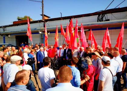 В отправке груза с территории совхоза имени Ленина приняли участие руководители КПРФ: Геннадий Андреевич Зюганов, Юрий Вячеславович Афонин, Владимир Иванович Кашин.