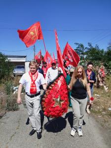 Всероссийский автопробег КПРФ в поддержку воинов СВО, под девизом - "За Родину! За народ России! За нашу Победу!", в Черкесске стартовал 27 августа по проспекту имени Ленина и начался с возложения венка и цветов к могиле первых коммунаров и замученных фашистами граждан на северной окраине Черкесска. О событиях далекого героического и трагического времени, о его неразрывной связи с событиями современности, рассказали участникам акции кандидаты в депутаты Народного Собрания (Парламента) КЧР, выборы седьмого созыва которого состоятся 8 сентября. Выступили член ЦК КПРФ, первый секретарь Карачаево-Черкесского республиканского комитета КПРФ Кемал Бытдаев, секретари Черкесского городского комитета КПРФ Сергей Ласков и Александр Лесовой, первый секретарь Ногайского районного комитета КПРФ Муратхан Михайлович, первый секретарь Усть-Джегутинского районного комитета КПРФ Казим Аппоев.