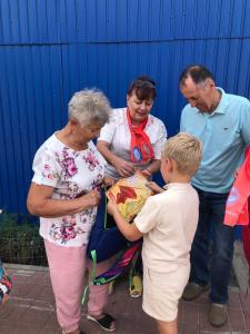 В Корочанском районе председатель Белгородского регионального отделения «Всероссийский женский союз «Надежда России» Елена Серенко вместе с первым секретарем местного отделения КПРФ Александром Черкасовым встретились с родителями и детьми села Анновка. К акции в Корочанском районе присоединились и члены волонтерского движения «Десятый круг». Вручили детям из многодетных семей вместе с рюкзачками и школьными принадлежностями сладкие подарки. По случаю дети и родители приоделись, читали стихи, рассказывали о своих планах на новый учебный год. Получился настоящий праздник.