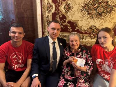 Секретарь Люберецкого городского отделения КПРФ Кирилл Поздняков и первый секретарь горкома ЛКСМ РФ Илья Кулин посетили ветерана Великой Отечественной войны, труженика тыла Шишкину Марию Васильевну.
