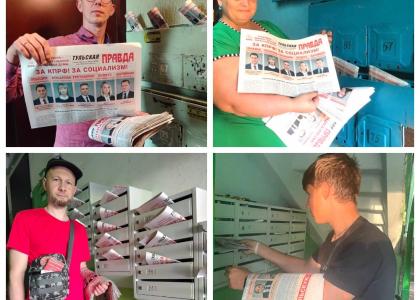 Мобильные группы молодых коммунистов-агитаторов ведут агитационную работу на оживленных улицах Тулы и районных центров. Избиратели уже получили четыре вида листовок, два вида календарей, два спецвыпуска газеты «Тульская правда». Общий тираж агитационной продукции превысил 1,5 млн экземпляров. Распространяется также спецвыпуск федеральной газеты «Правда». Помимо пикетов, коммунисты также накрывают разноской многоэтажные жилые дома - избиратели получают агитацию в почтовые ящики.