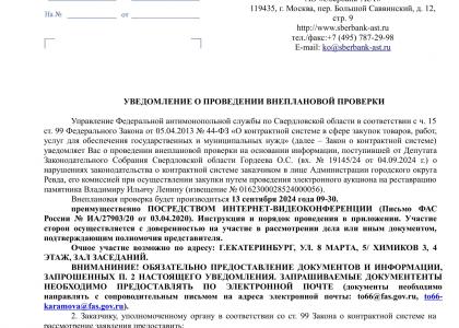 Основанием для проверки послужило обращение депутата Законодательного Собрания от КПРФ Олега ГОРДЕЕВА, в котором он указал на нарушения законодательства о контрактной системе заказчиком в лице Администрации городского округа Ревда, его комиссией при осуществлении закупки путем проведения электронного аукциона на реставрацию памятника Владимиру Ильичу Ленину.
