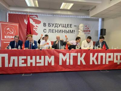 21 сентября 2024 года в Москве состоялся IX (сентябрьский) Пленум МГК КПРФ. Открыл заседание Первый секретарь МГК КПРФ, член ЦК КПРФ Н.Г. Зубрилин. В работе пленума приняли участие секретарь ЦК КПРФ В.А. Царихин.