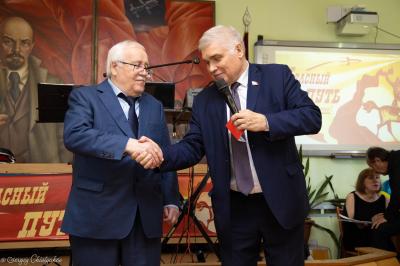 Торжественное собрание открыл первый секретарь Омского обкома КПРФ Андрей Алехин. Традиционно вручены партийные билеты новобранцам, первый секретарь Ленинского местного отделения Владимир Свистунов награждён памятной медалью ЦК КПРФ «70 лет освоения Целинных земель», а главный редактор «Красного Пути» Адам Погарский награждён медалью «50 лет начала строительства Байкало-Амурской магистрали».