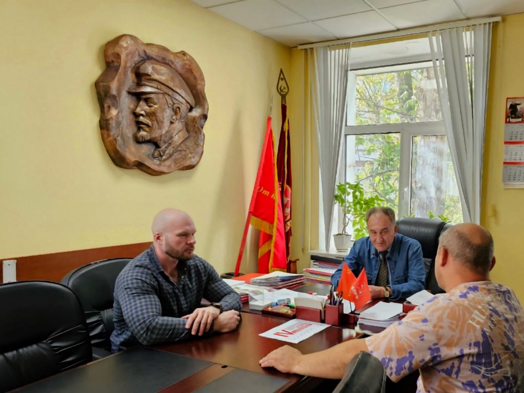 Первый секретарь Дмитровского ГК КПРФ Александр Корнев вместе с руководителем волонтерского направления при Дмитровском городском комитете КПРФ Михаилом Васюковым доложили первому секретарю Московского областного отделения КПРФ Николаю Ивановичу Васильеву о работе по снабжению военнослужащих в зоне СВО.
