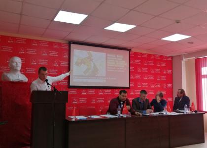 С докладом об итогах избирательной кампании по довыборам депутата АКЗС в Железнодорожном районе выступили Александр Волобуев, первый секретарь Барнаульского горкома КПРФ, и Егор Поломошнов, секретарь по организационно-партийной работе горкома. Они рассказали об участии партийного актива в выборах, подробно проанализировали деятельность первичных организаций и новые формы работы, применявшиеся в ходе избирательной кампании.