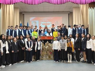 Почетное право открыть Парту Героя Саввы Михайлова предоставили Валерии Протопоповой-Михайловой, Айаану Васильеву, Анне Соловьевой и президенту школы № 1 комсомольцу Павлу Егорову.