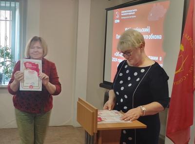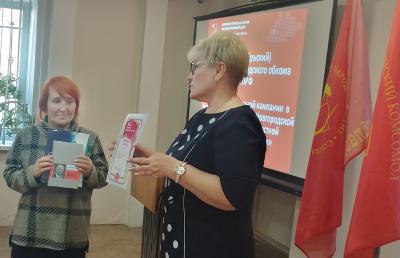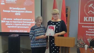 Перед началом работы Пленума О.А. Ефимова "За добросовестный труд, значительный вклад в развитие региона и в связи с 80-летием образования Новгородской области" вручила отличившимся коммунистам Почётные грамоты.
