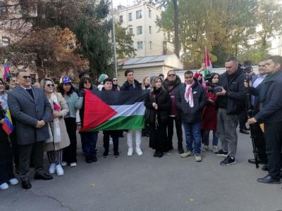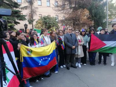 В своих выступлениях посол Республики Палестина Абдель Хафиз Нафаль и посол Боливарианской Республики Венесуэла Хесус Рафаэль Саласар Веласкес обратили внимание на то, что тяжелейший конфликт на Ближнем Востоке вылился в грубейшее нарушение всех норм международного права и наличия двойных стандартов властных представителей коллективного Запада. Несмотря на призывы ООН, других международных организаций и многих государств ситуация в регионе лишь серьезно обостряется. Участники митинга у здания Посольства Палестины в Москве с горечью говорили об ужасах и бедах, которые постигли палестинский и ливанский народы.
