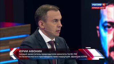 Первый заместитель Председателя ЦК КПРФ Ю. В. Афонин принял участие в программе «60 минут» на телеканале «Россия-1».