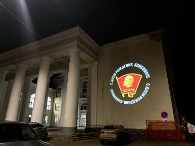 Горожане смогли увидеть на стенах зданий проекцию эмблемы ЛКСМ РФ, созданную с помощью гобопроектора. Одним из мест, где "засветилась" комсомольская символика, стал Дом культуры имени Серго Орджоникидзе – место, традиционно связанное с празднованием Дня комсомола.