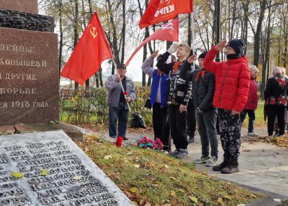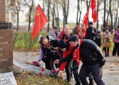 Затем в память о комсомольцах, погибших в годы Гражданской войны, собравшиеся возложили цветы к монументу героям.