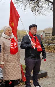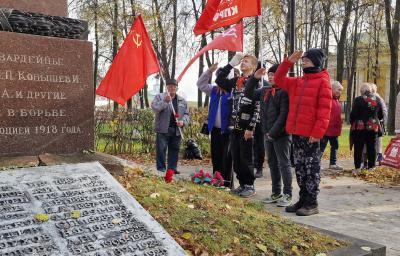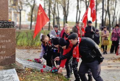 Затем в память о комсомольцах, погибших в годы Гражданской войны, собравшиеся возложили цветы к монументу героям.